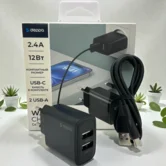 СЗУ-2USB Deppa, 2.4A + кабель USB-Type-C, 1м, черный
