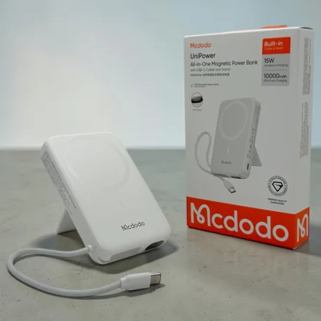 Внешний аккумулятор 10000 mAh McDodo MC-8650, MagSafe, 22.5W, + кабель USB-C, белый