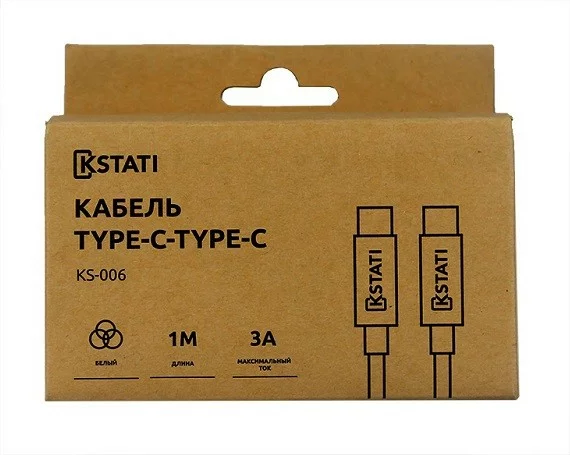 Кабель Kstati KS-006 USB-C - USB-C, белый, 1м, 3А
