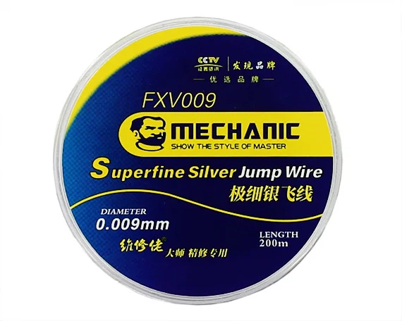 Нить серебряная Mechanic FXV009 сверхтонкая 0,009мм (200м.) для восстановления контактных дорожек