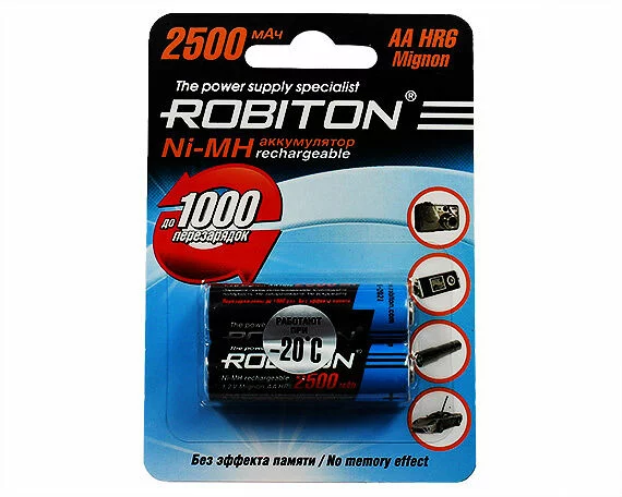 Аккумулятор AA Robiton R6 2-BL 2500mAh, цена за 1 упаковку