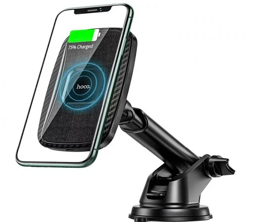 Автомобильный держатель Hoco CA75 магнитный с QI черный (крепление на панель)