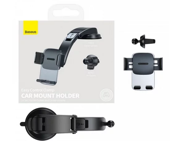 Автомобильный держатель Baseus Easy Control Clamp Car Mount Holder (A Set) черный (крепление на панель, стекло, в решетку) (SUYK000001)