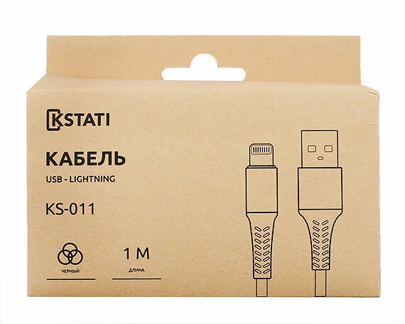 Кабель Kstati KS-011 Lightning - USB черный, 1м в Красноярске