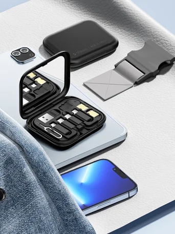 Набор путешественника, 12 в 1, переходники, скрепка, подставка, зеркало, черный, 72529 в Красноярске