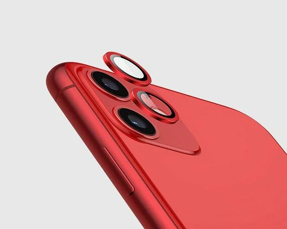 Защитная накладка на камеру iPhone 11/12 mini красная (комплект 2шт)