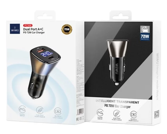 АЗУ-1USB + 1USB-C Wiwu PC500, 72W, дисплей, черный