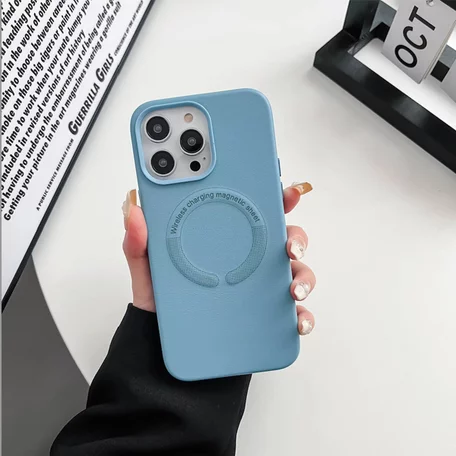 Чехол iPhone 13 Pro Leather Candy MagSafe, голубое небо