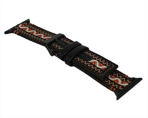 Ремешок Watch Series 42mm/44mm/45mm/49mm Art canvas band черно-коричневый #1