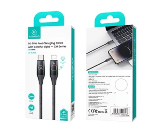 Кабель Usams US-SJ638 30W USB-C - Lightning черный градиент, 1,2м