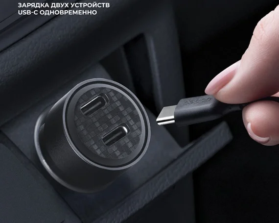 АЗУ-2USB-C Deppa PD, QC3.0, 50W, Crystal, прозрачный, черный в Красноярске