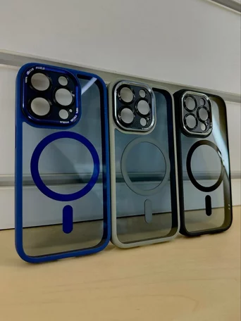 Чехол iPhone 15 Pro Njoyny Matte MagSafe (синий) в Красноярске