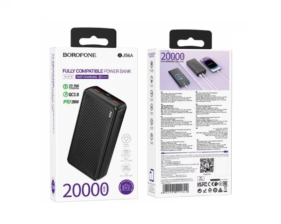 Внешний аккумулятор Power Bank 20000 mAh Borofone BJ56A Graceful 22.5W+PD20W, черный