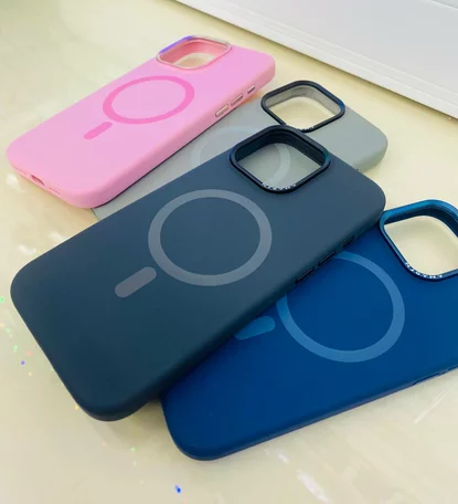 Чехол iPhone 15 Pro Max Njoyny Metal Silicone (розовый) в Красноярске