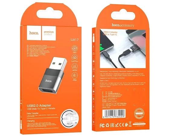 OTG Hoco UA17 USB папа to Type-C мама USB2.0 черный