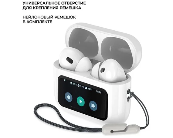 Bluetooth стереогарнитура Deppa AirPro3 ANC, TWS, BT 5.3, 350mAh, LCD, белая, 44213