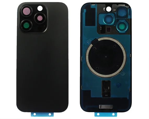 Задняя крышка (стекло) iPhone 16 Pro (со стеклом камеры в сборе+магнит) черный титан 1 класс
