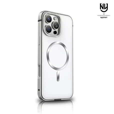Чехол iPhone 16 Pro Max Njoyny Metal MagSafe (белый)